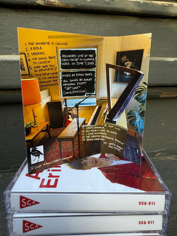 This cassette tape captures Ashley Eriksson live at the Crow House in Olympia, Washington, June 7, 2025. It's Ashley at the piano (with harp and auxiliary instruments) playing her latest compositions/ditties/odes/themes.